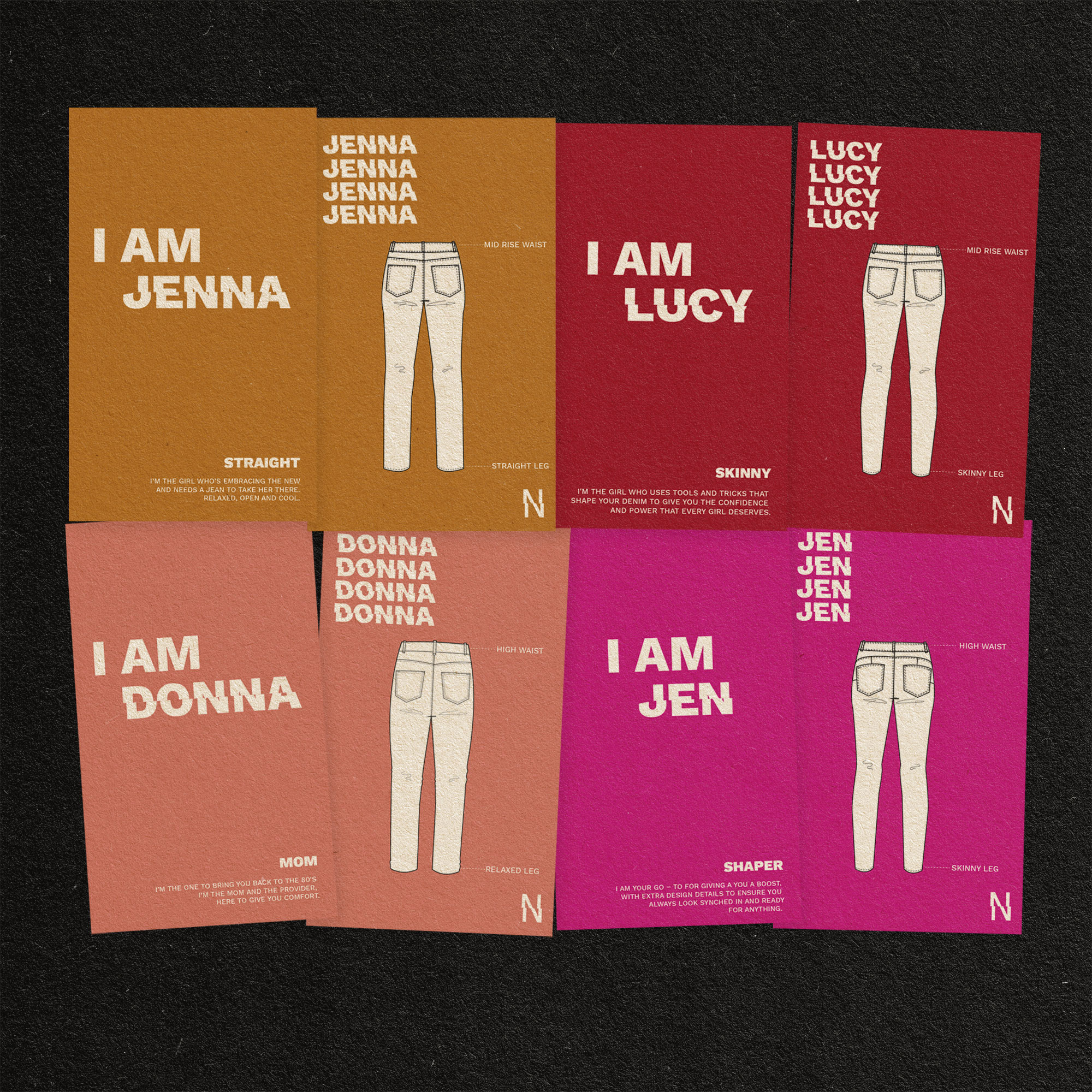Noisy May has a disruptive, youthful, and unconventional identity, which became the foundation of the campaign. While researching the denim range, we discovered that each jean style was named after the head designer’s ex-girlfriends, a quirky and personal detail that became the starting point for the concept. This aligned well with Selfridges’ recent rebrand at the time, which leaned into playful, colourful, and expressive visuals.